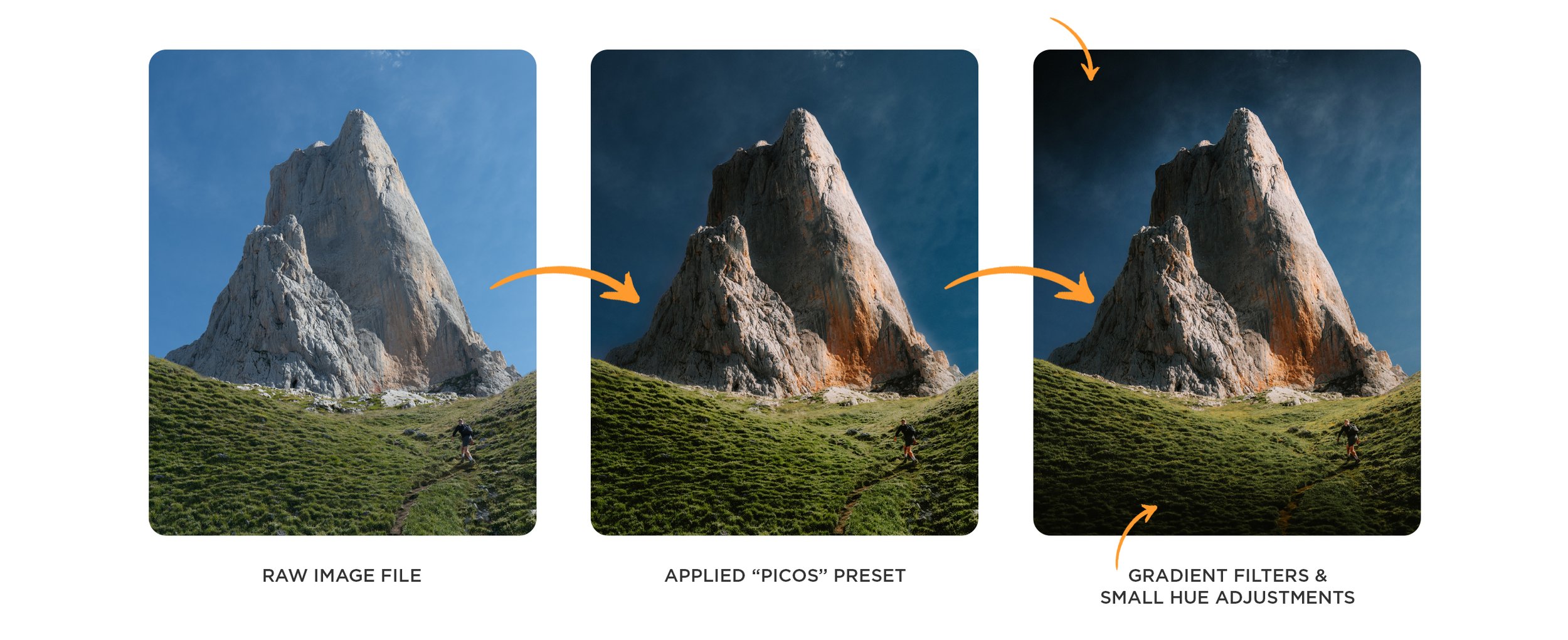 A collection of 12 unique presets designed to add dreamy, cinematic impressions to your photos while speeding up your workflow - each preset a culmination of years spent visualising, refining and falling in love with the colours of the outdoors